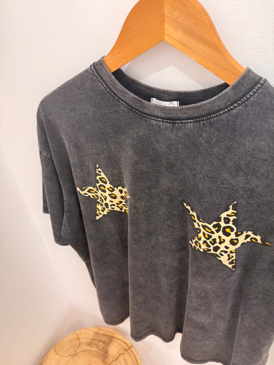 By Frankie/ Leopard Stars Tee-Acid Wash