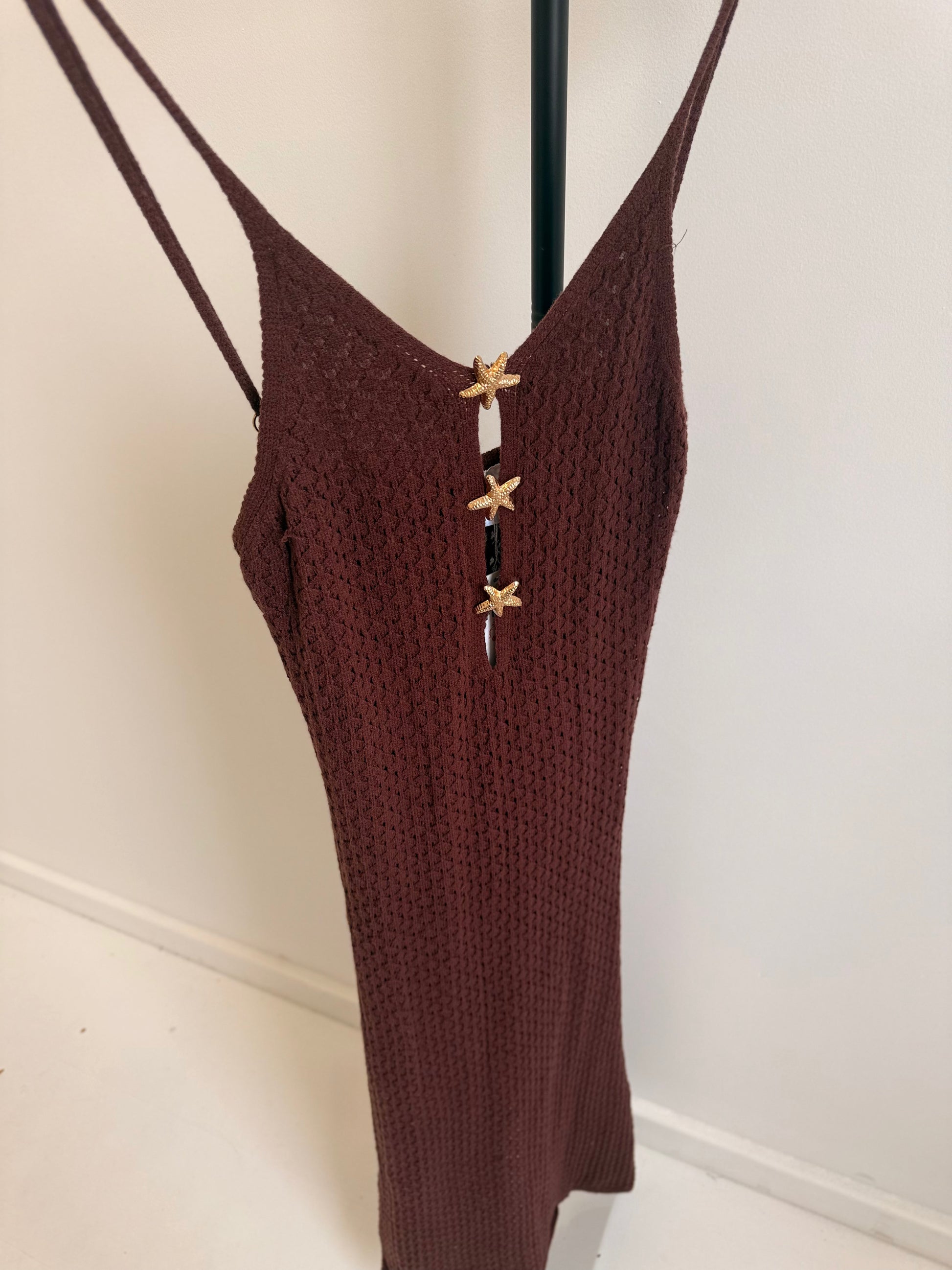 Introducing the Ares Star Maxi dress, the perfect statement piece for warm weather. Made with crochet detailing and adorned with a beautiful gold star details, this dress is a must-have for any fashion-forward individual. Make a statement and stay cool in style with the Ares Star Maxi.