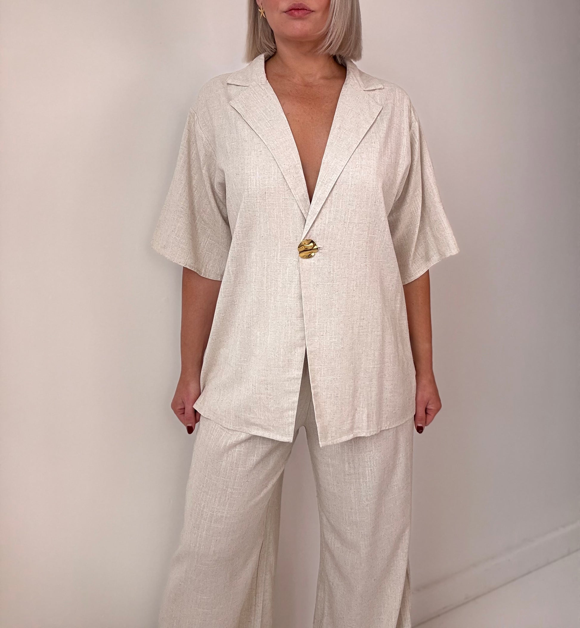 Ava Button Pant Set- Oat