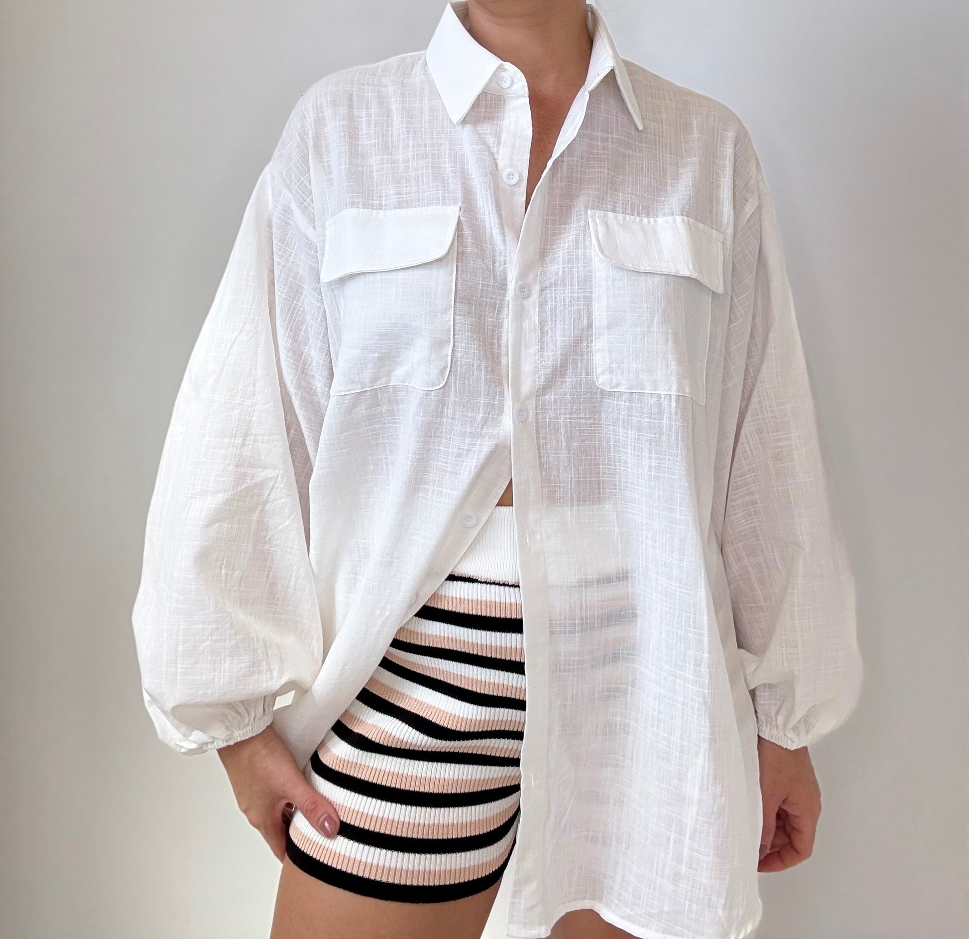 Stay comfy and stylish with the By Frankie Boho Blouse in white. Made with a lightweight material, this blouse features detail oversize sleeves and an oversize fit for a relaxed look. Complete with pocket detailing, it's the perfect addition to your wardrobe.