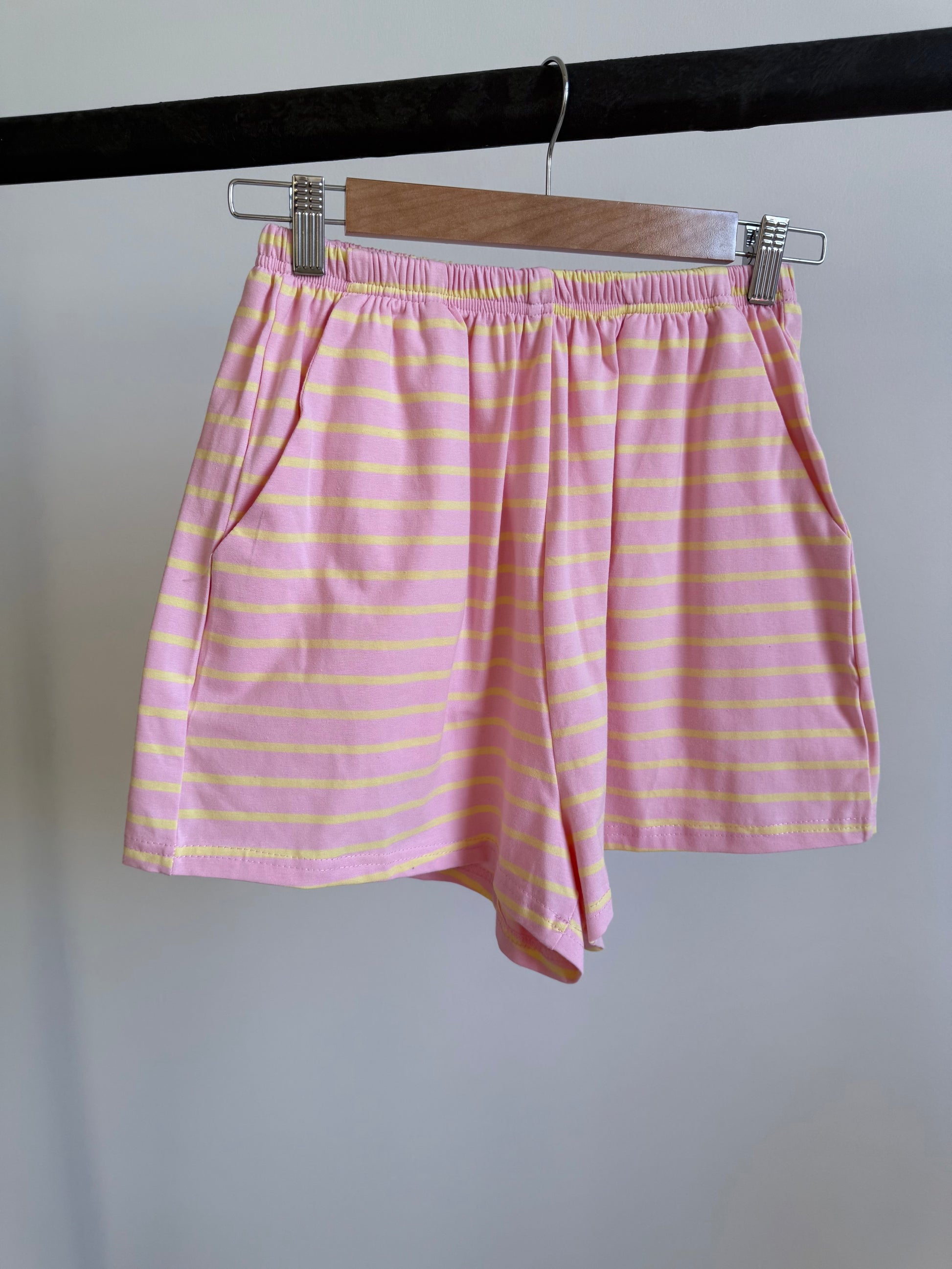 Experience luxurious comfort with By Frankie's Bronte short in yellow and pink stripe. Made with butter soft fabric, these shorts also come with convenient pockets and the ability to mix and match with other pieces. Upgrade your wardrobe with style and ease.