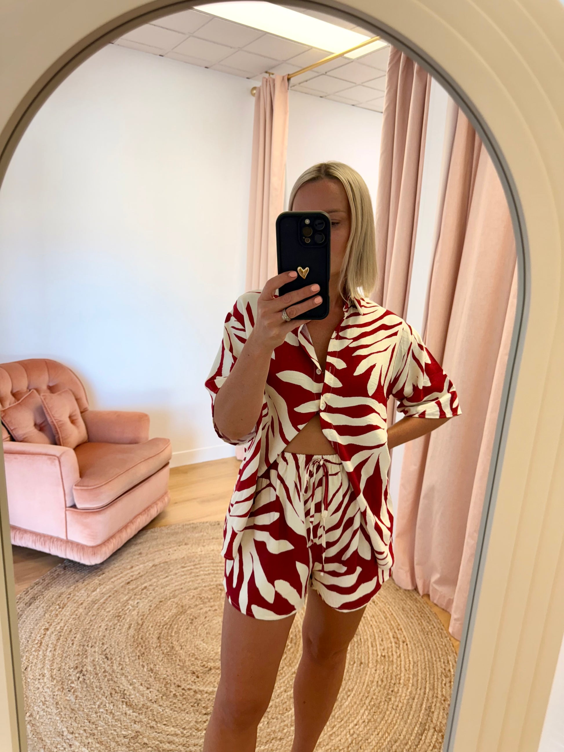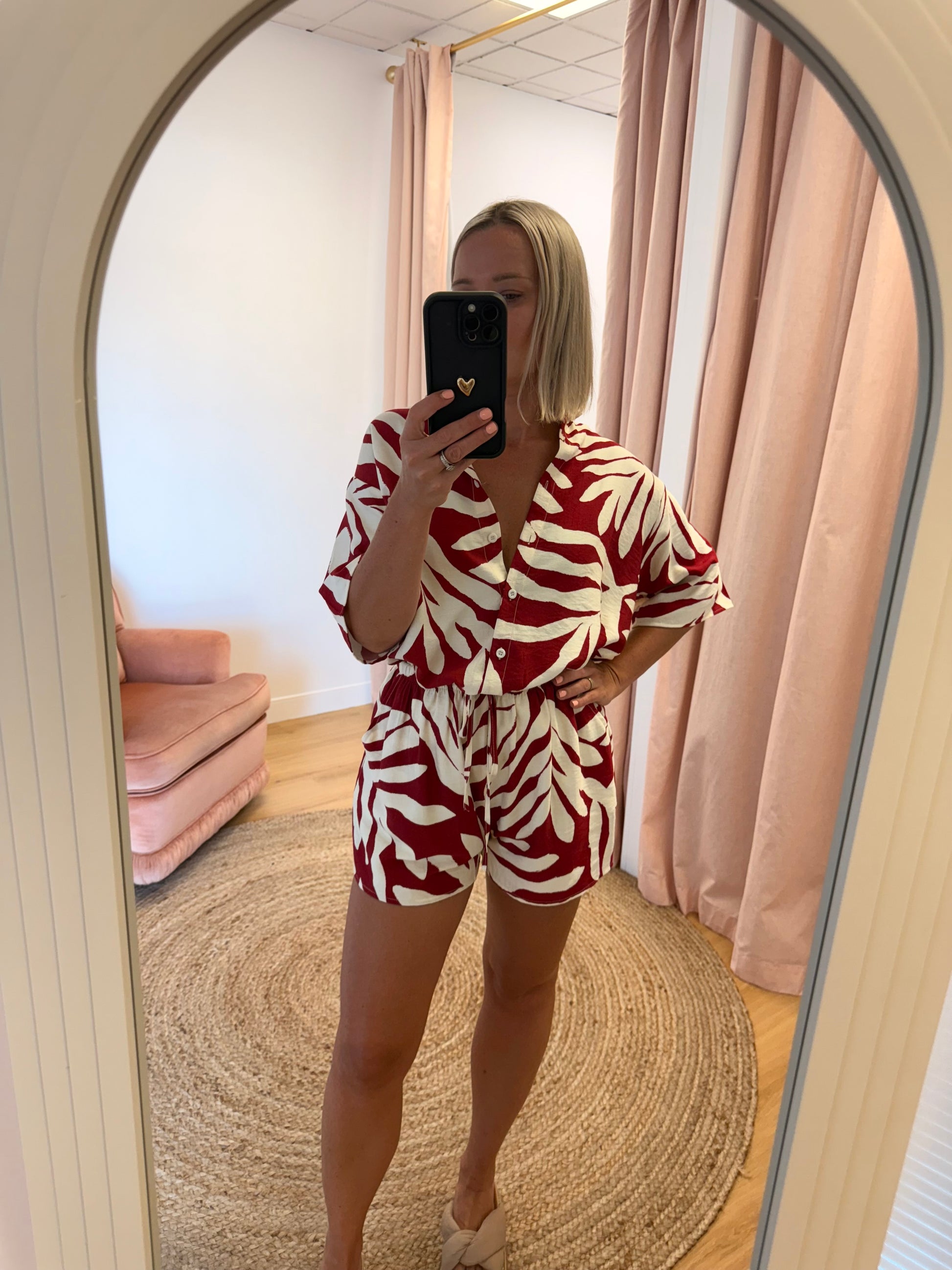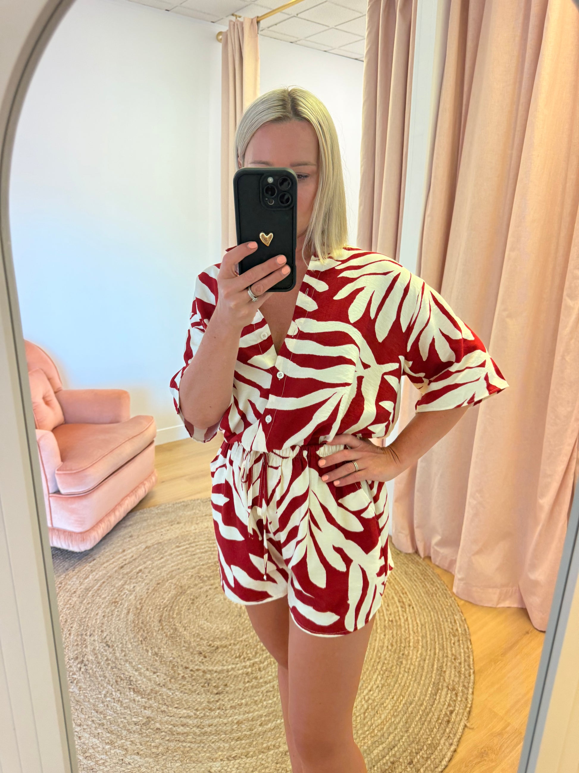 This By Frankie/Nora Set includes a button design short sleeve top and drawstring waist shorts, offering both style and comfort. The button design adds a touch of elegance, while the drawstring waist ensures a perfect fit. Perfect for any casual occasion, this set is a must-have for your wardrobe.