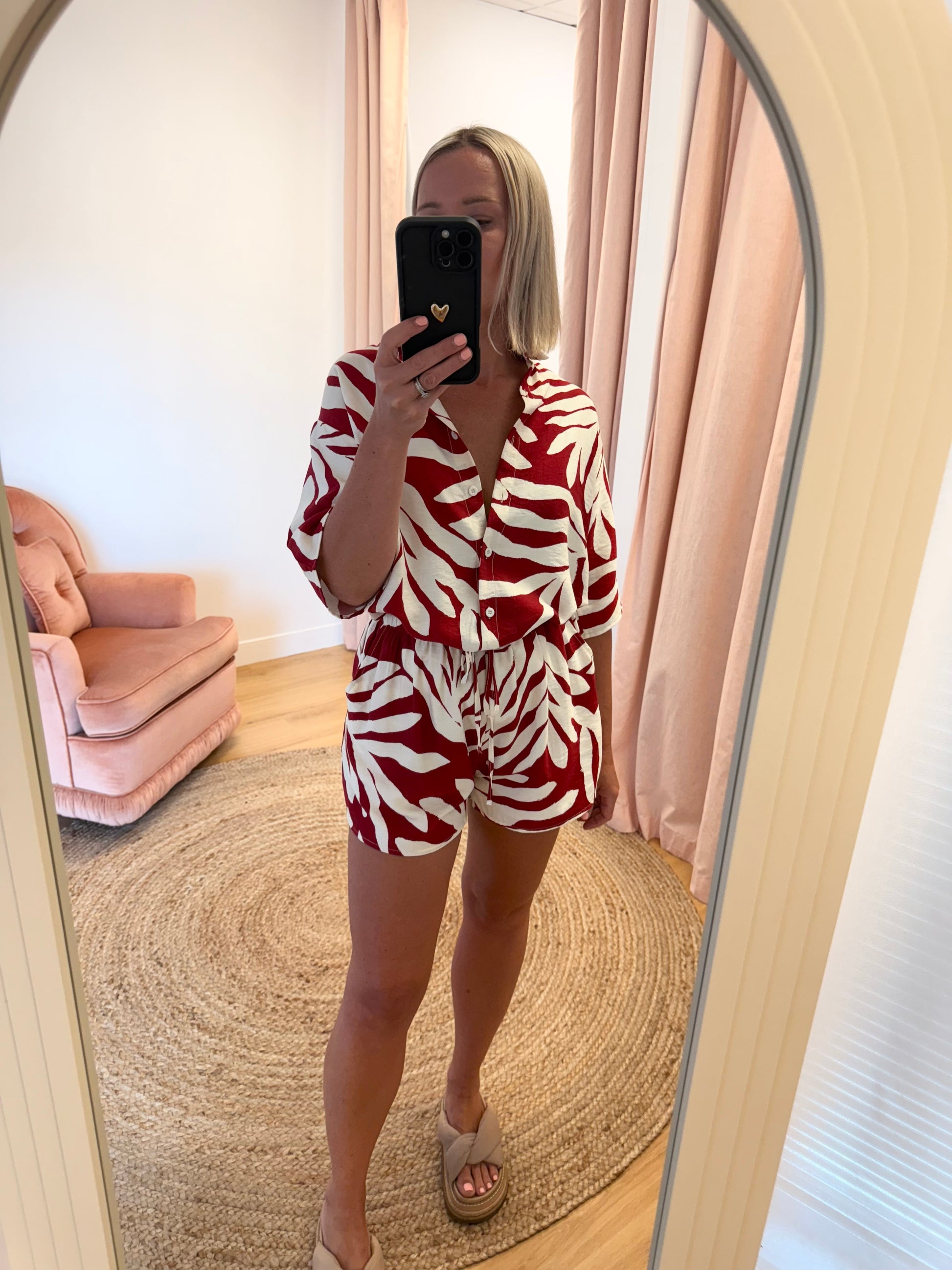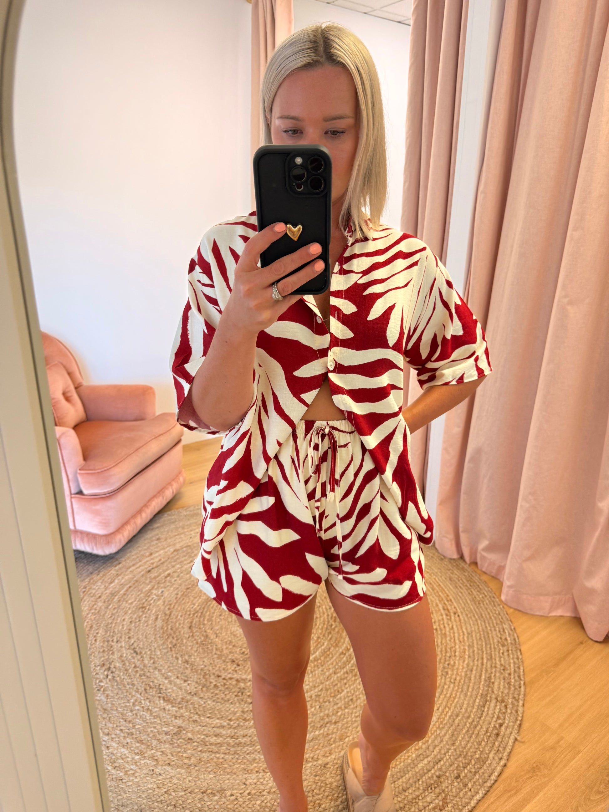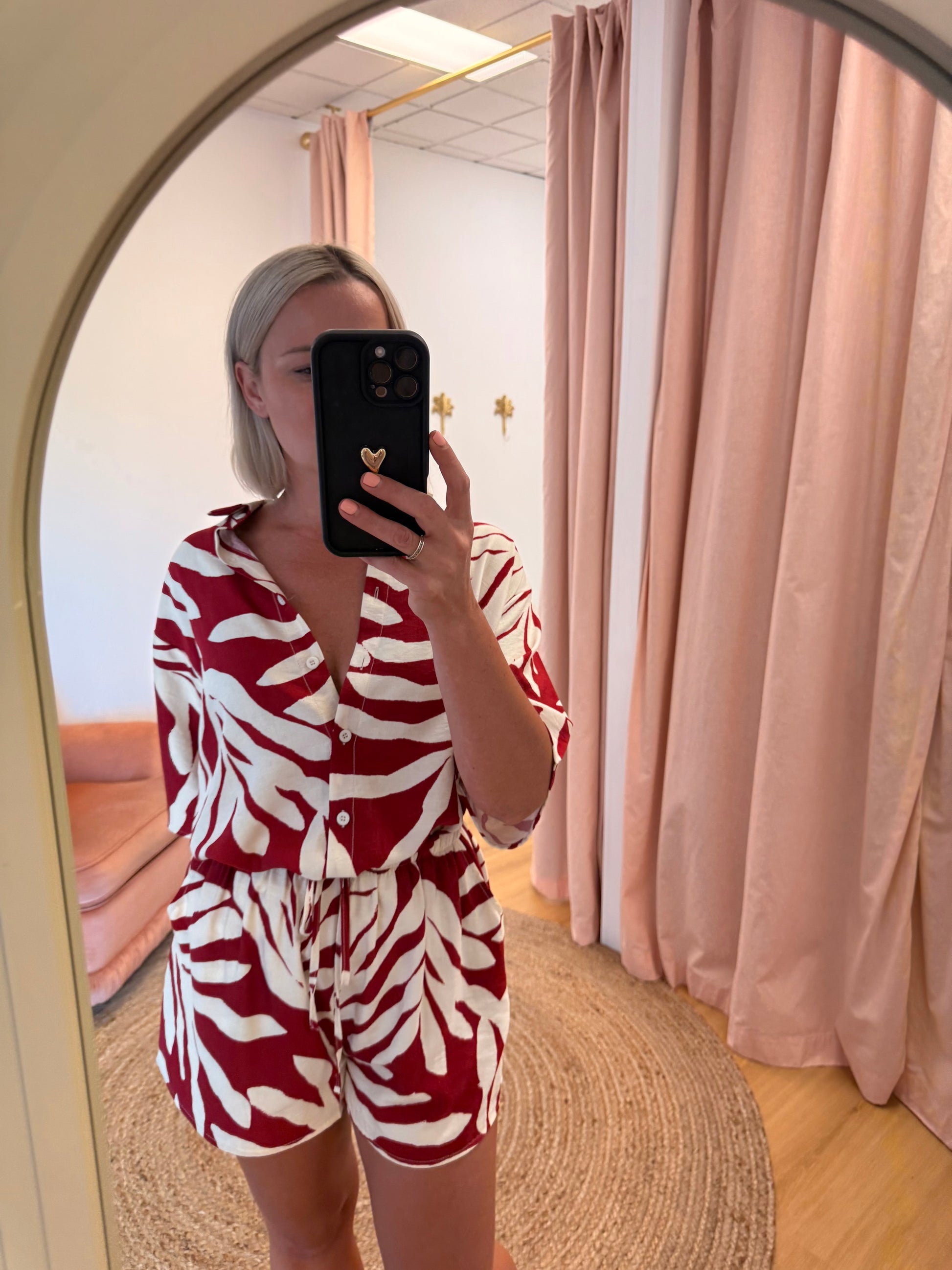 This By Frankie/Nora Set includes a button design short sleeve top and drawstring waist shorts, offering both style and comfort. The button design adds a touch of elegance, while the drawstring waist ensures a perfect fit. Perfect for any casual occasion, this set is a must-have for your wardrobe.