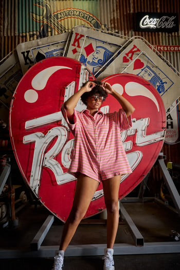 HIBISCUS HOTEL- Candy Stripe Playsuit