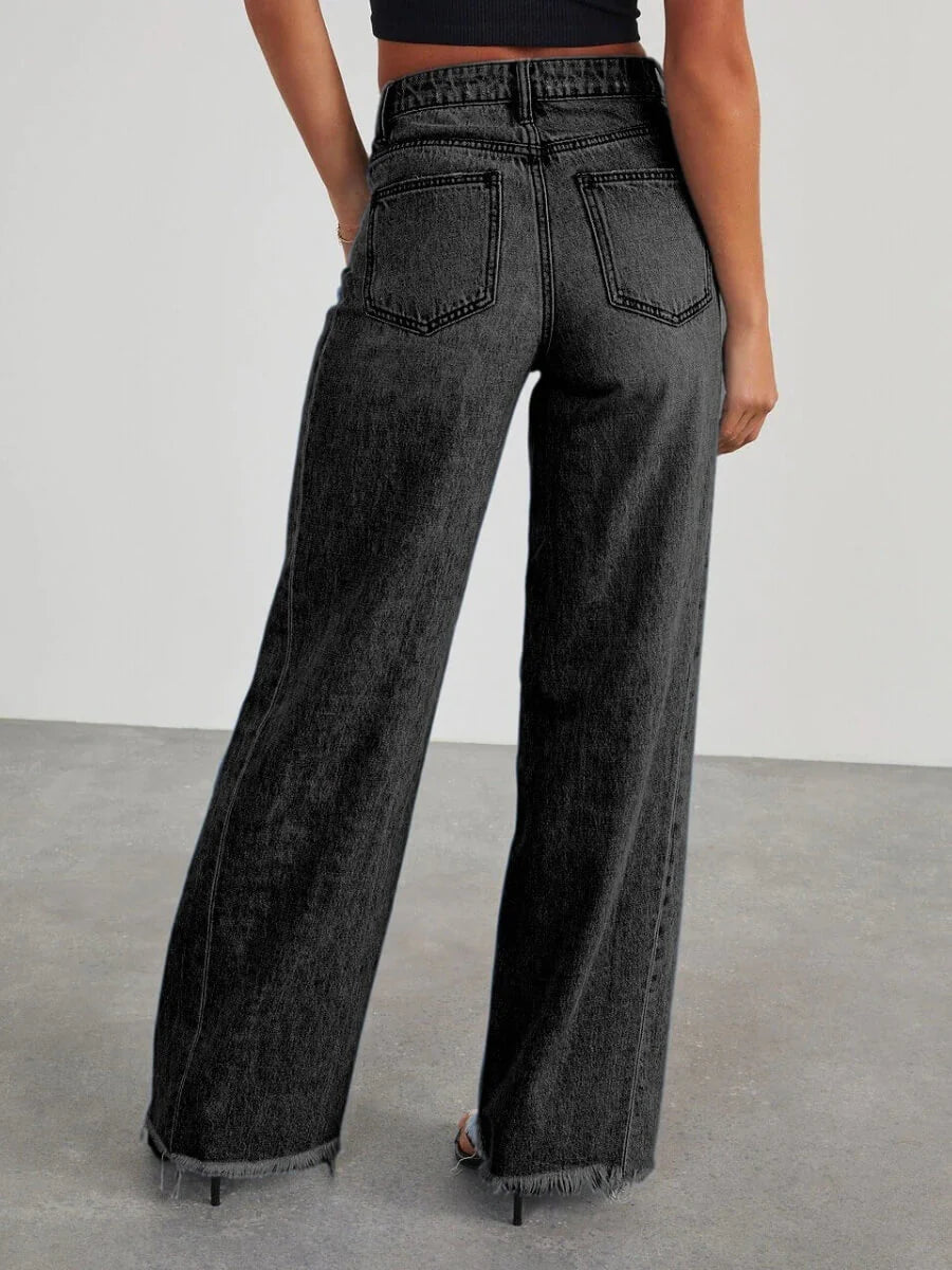 "Expertly crafted with seam panel detailing, these jeans boast a flattering mid-rise and a wide leg silhouette. Perfect for any occasion, they offer both style and comfort."