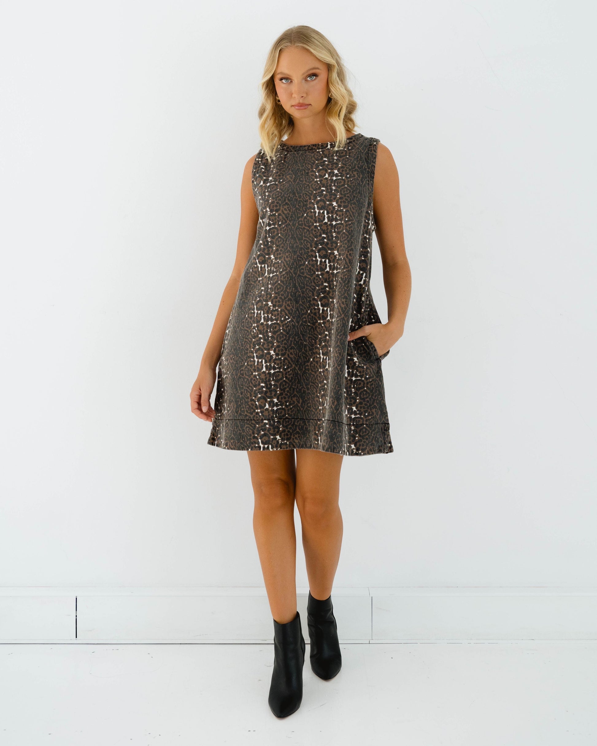 The Lee leopard shift is a trendy dress that combines comfort and style. Its denim material and leopard print pattern give a unique and eye-catching look, while the shift design offers a comfortable and flattering fit. Perfect for any occasion, you'll love the way you look and feel in this dress.