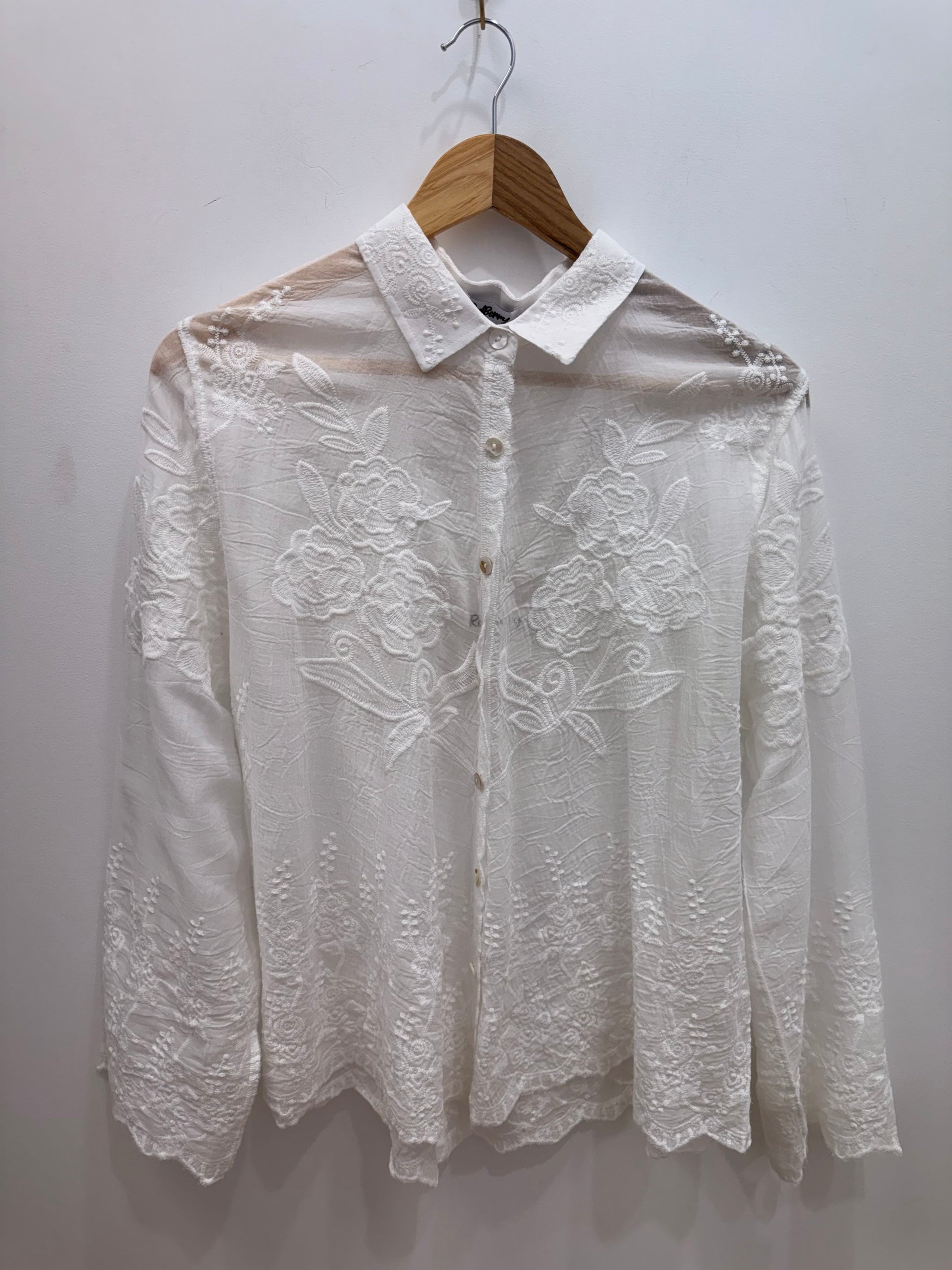 Introducing the Lila Blouse, perfect for summer with its lightweight fabric and crochet details. Expertly crafted with a button-up design and collar, this blouse exudes fresh and stylish vibes. Add a touch of elegance to your wardrobe with this must-have piece.