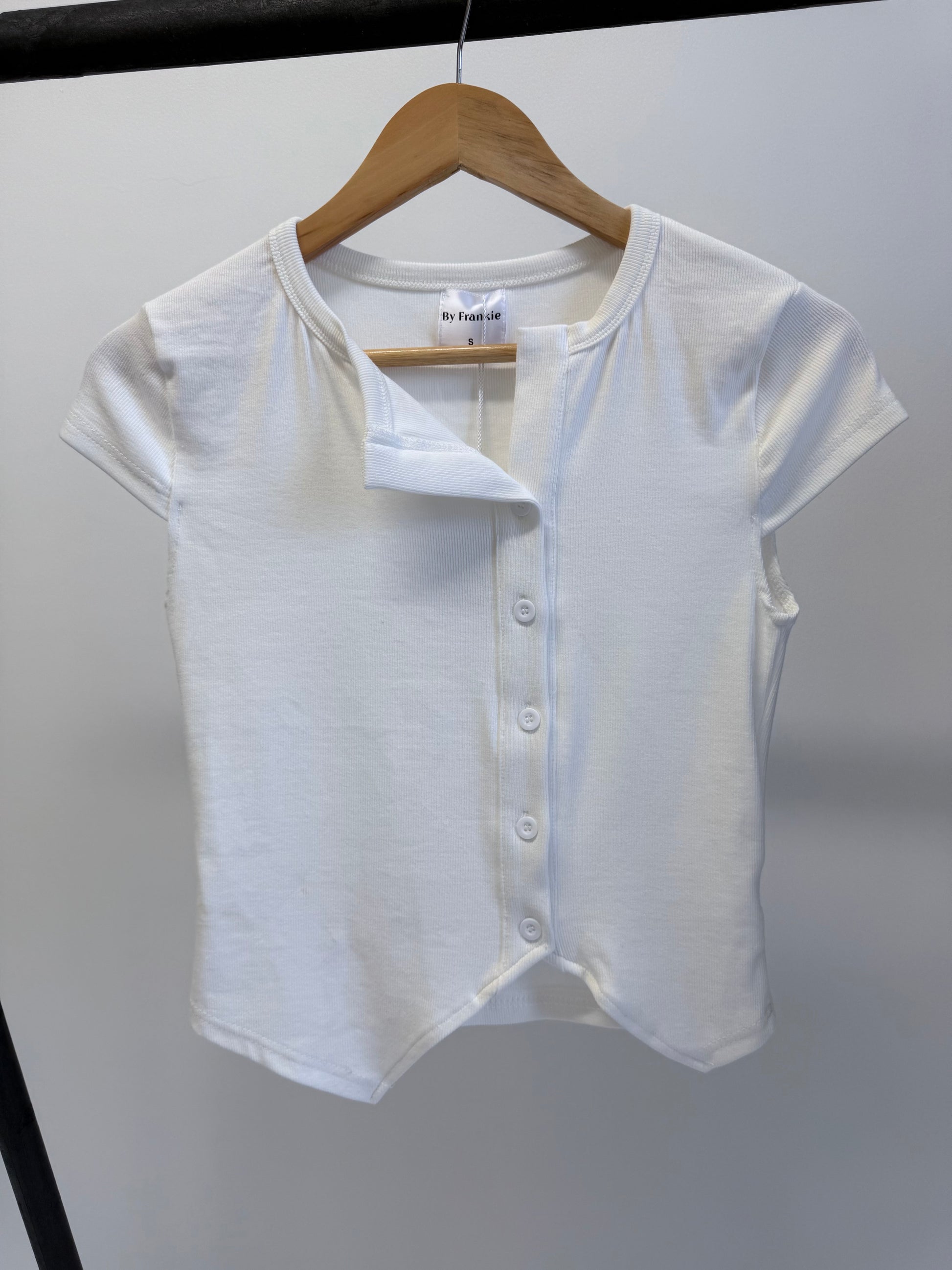 The Mila crop top is made from 100% ribbed fabric and features a button-up design with a detailed cut, creating a stylish and cute look. Perfect for any casual or dressy occasion, this top is both comfortable and fashionable.
