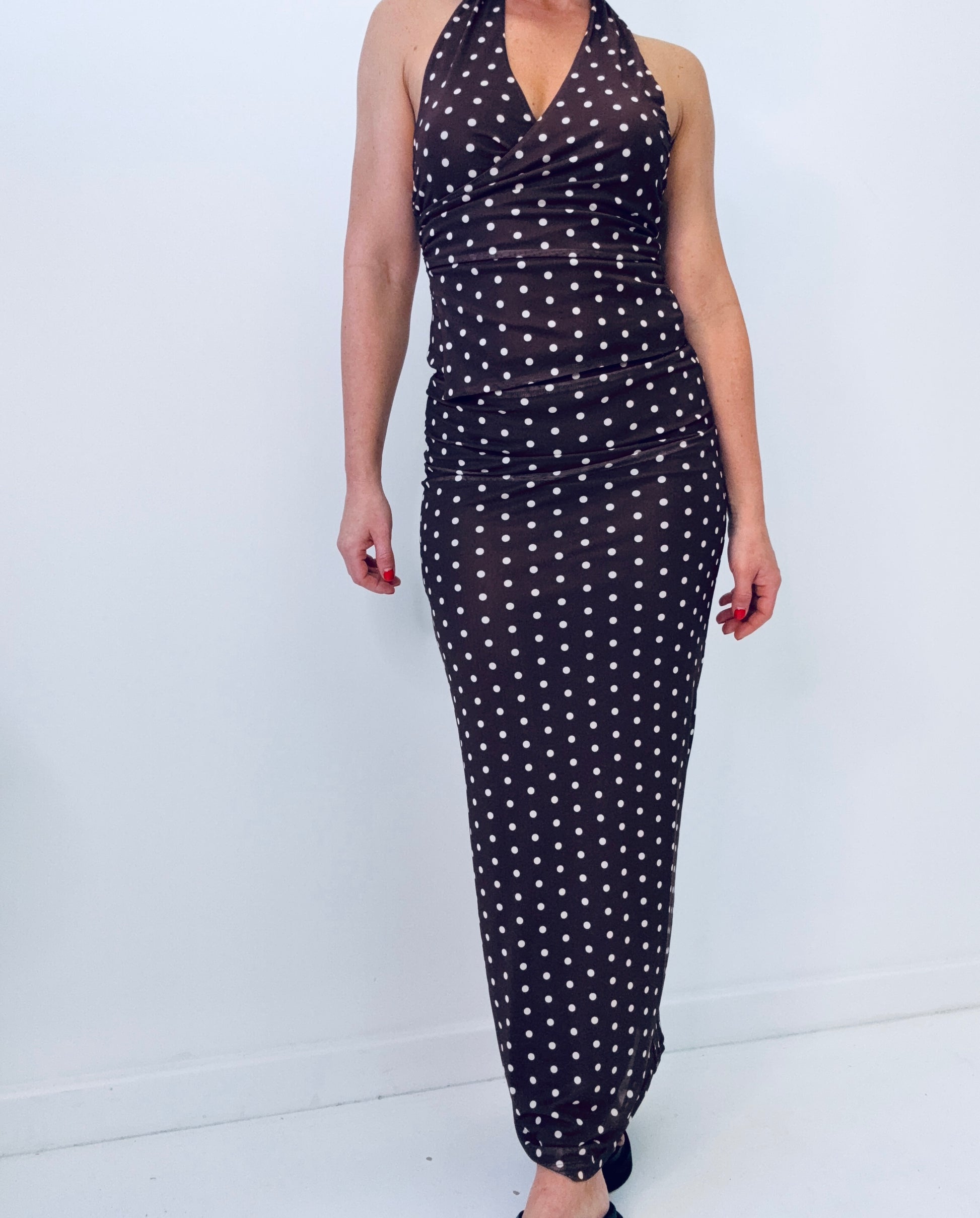 "Polka Dot Chocolate is a fitted maxi skirt that features an elastic waist and is lined with mesh fabric for a perfect fit. This skirt pairs perfectly with our Lillie halter for a polished and put-together look. Stay comfortable and stylish with Polka Dot Chocolate."