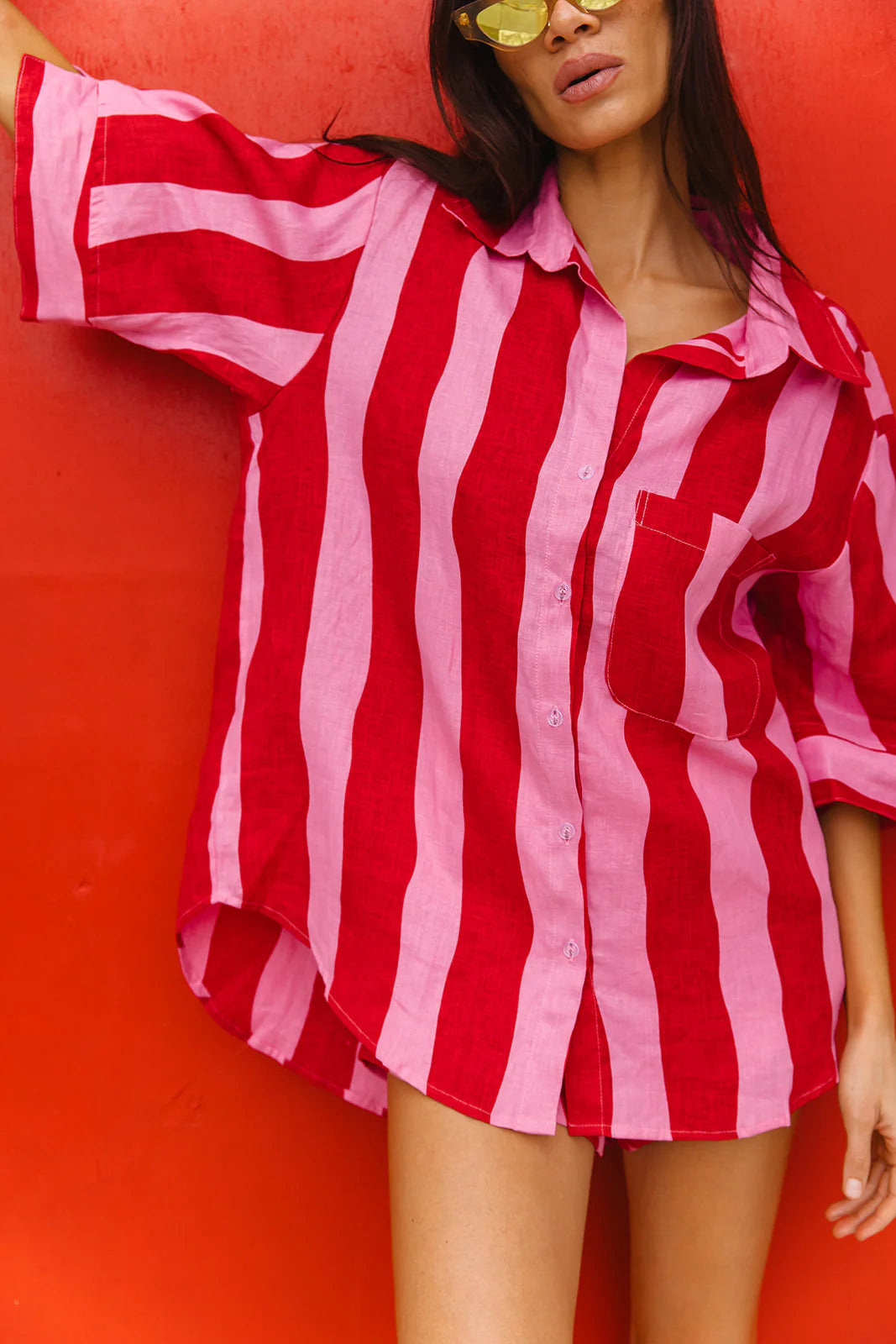 A statement style from our new collection, the Sumba Top has been cut from environmentally responsible Linen, certified for breathability and comfort. A cool, boxy fit by design, this piece features self-covered button detailing and mid length sleeves. Wear it unbuttoned over your swimsuit or pair with the coordinating Antigua Shorts for a stylised look.