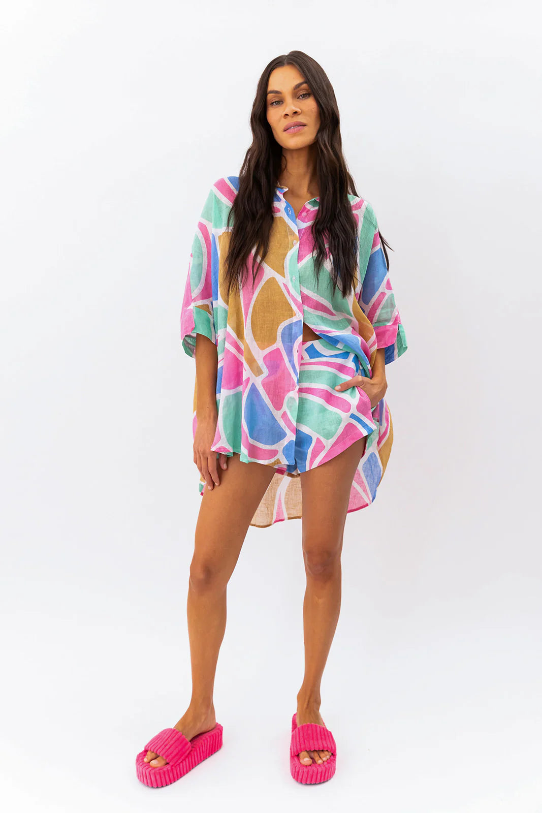 A Lokoa wardrobe staple you simply cannot go past. The most comfortable top has arrived in our NEW signature Juniper Print. The Tulum Top features a lightweight linen fabric, oversized fit that is teamed PERFECTLY with any of our Kekoa Shorts.