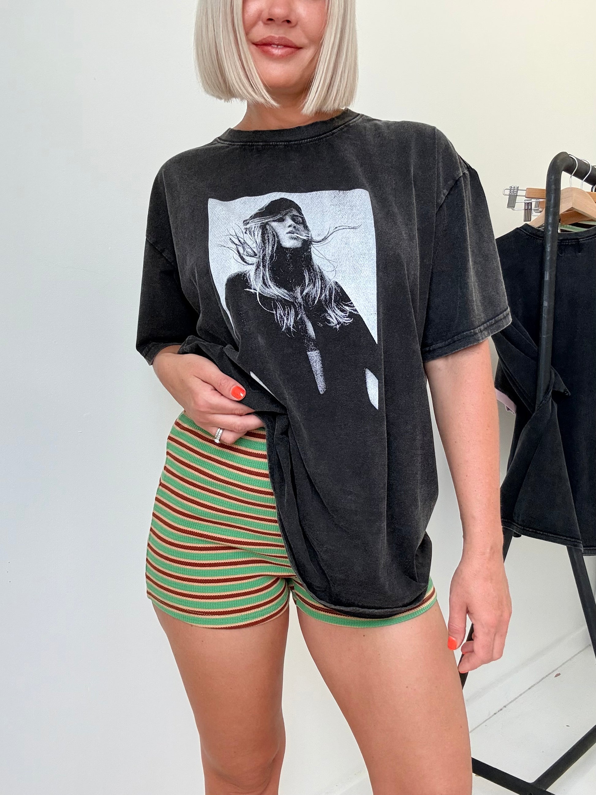 The By Frankie Knit Shorts in Green/Mocha feature a stripe design and are made from 100% cotton for breathability. The elastic waist ensures a comfortable fit, while the stretch fabric allows for ease of movement. Ideal for casual wear, these shorts combine style and functionality.