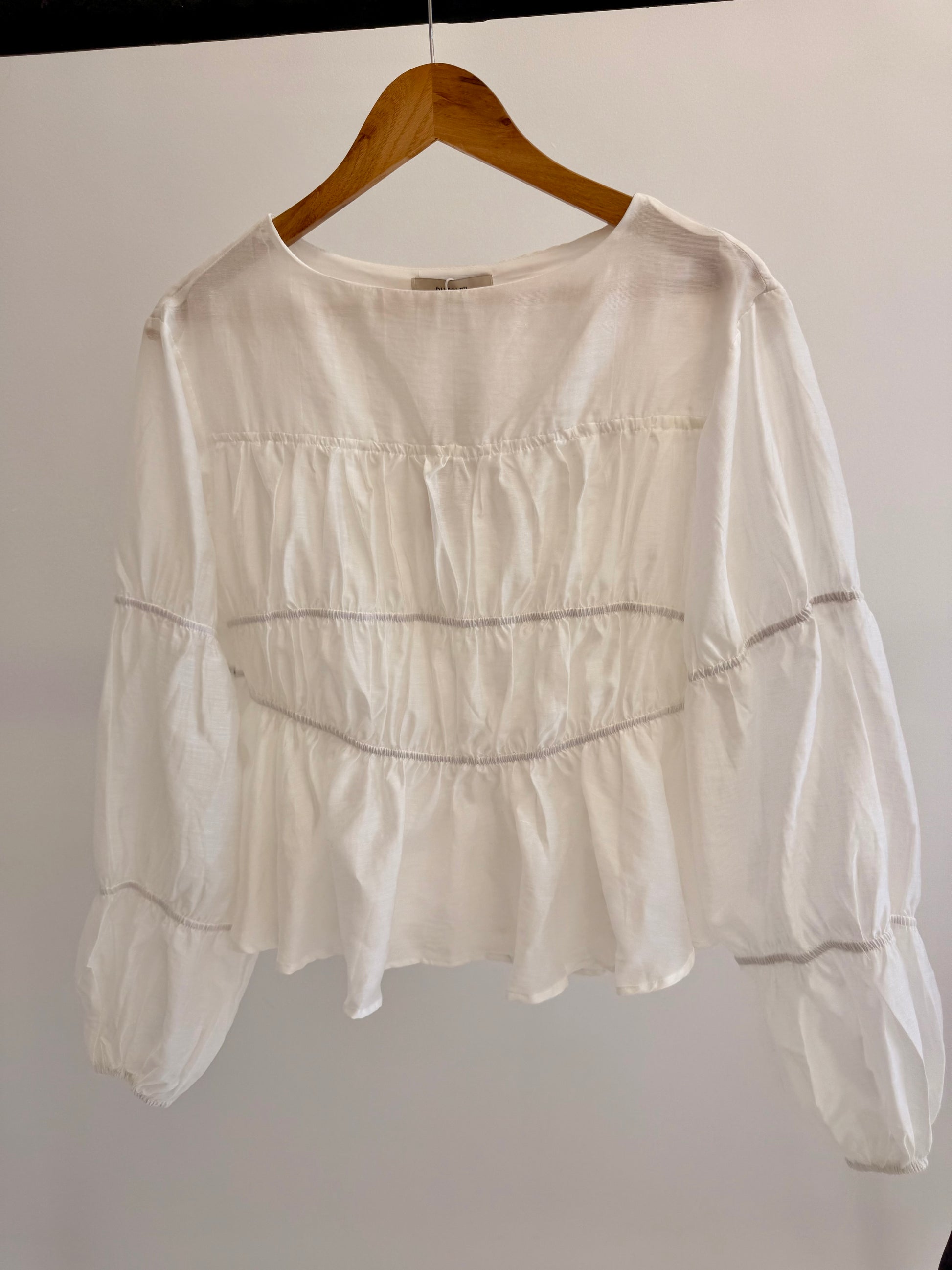 The Mia Gathered Blouse is a lined linen blend blouse with elegant gathering details. Perfect for any occasion, this stylish blouse offers both comfort and style. Expertly crafted with a blend of linen, it is both lightweight and breathable, making it a versatile addition to any wardrobe.